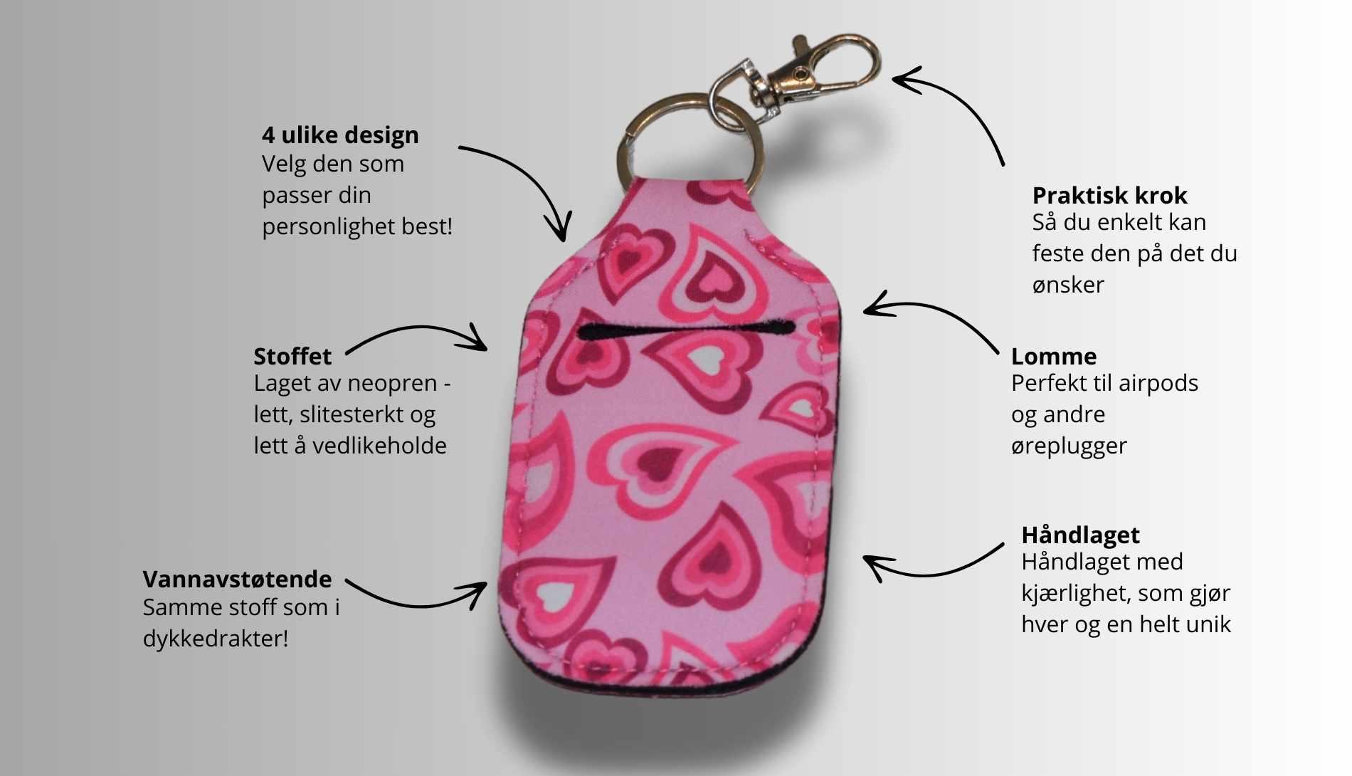 Våre nøkkelringer med krok kommer i to praktiske varianter – én designet for AirPods eller ørepropper, og én for lipsyl eller leppepomade. Begge typer finnes i fire forskjellige design, så du kan finne den som passer best til din stil. Enten du trenger en praktisk løsning for å holde øreproppene trygt på plass eller en smart måte å ha leppepomaden tilgjengelig, har vi det du trenger.