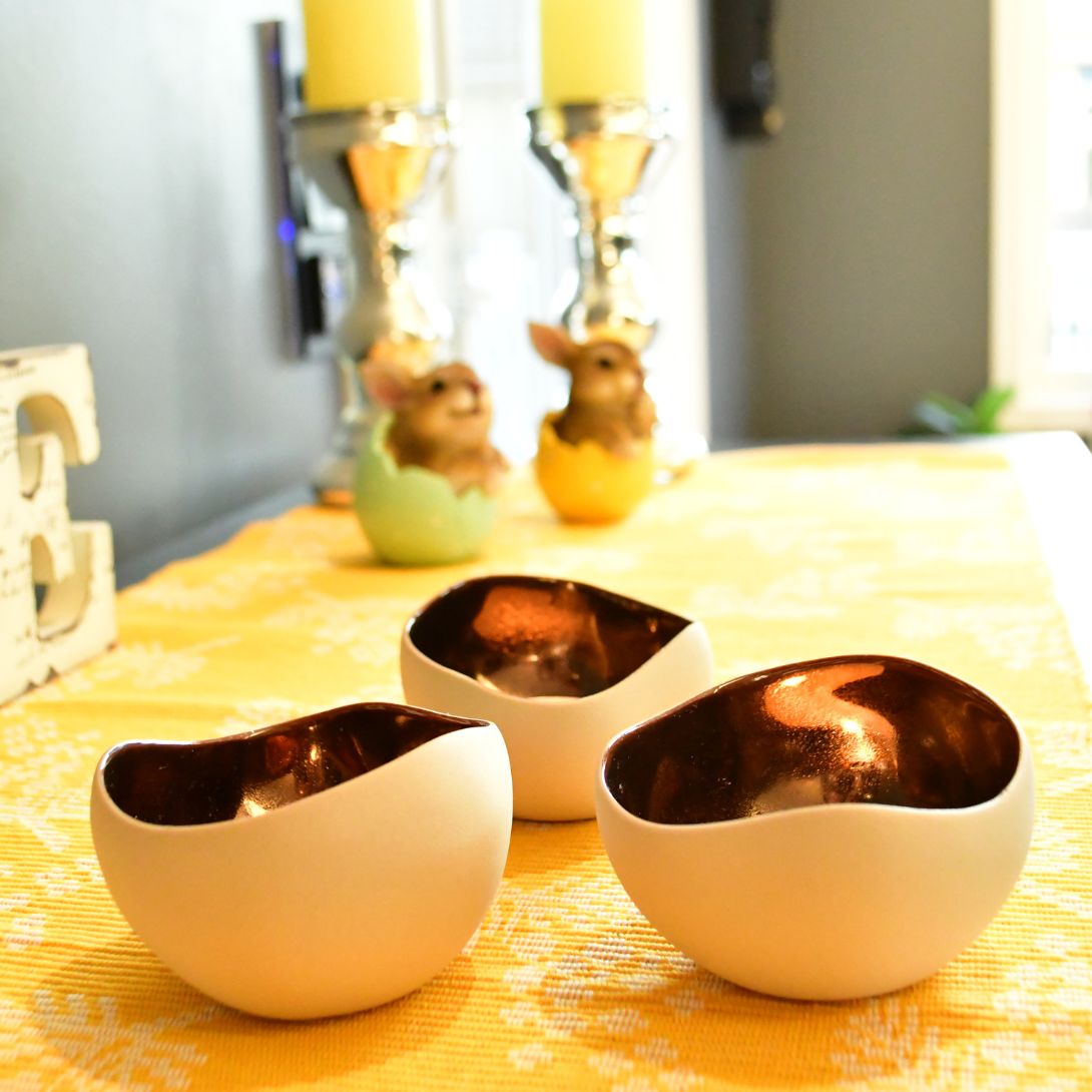Nydelige håndlagde telysholdere fra Frankrike, som passer like fint til påskepynt som pynt resten av året. Disse er også veldig fine til bruk som små skåler med godteri og snacks.