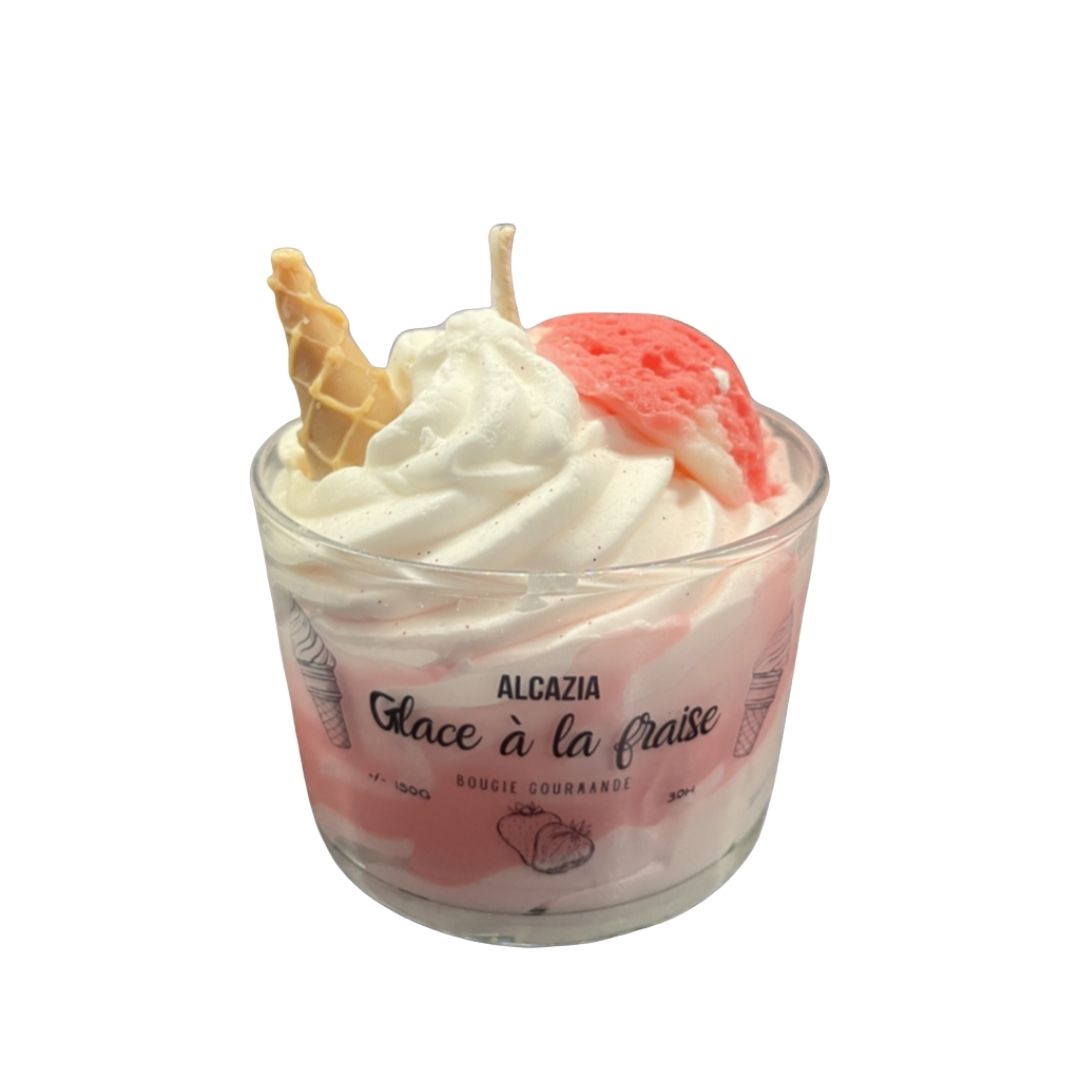 La deg friste av vårt håndlagde duftlys fra Frankrike, som ser ut som en deilig jordbæris! Den søte duften av friske jordbær smelter sammen med myk vanilje, og skaper en herlig atmosfære i hjemmet.